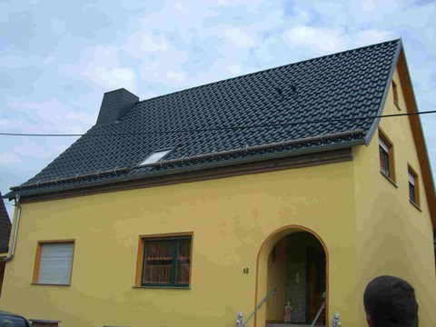 Dachsanierung mit Creaton ® Flachdachpfanne, Futura Noblesse, dunkelgrün glasiert. |